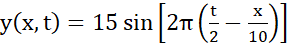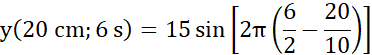Oblicz wychylenie od położenia równowagi punktu odległego od źródła fali o x = 20 cm po t = 6 s od początku badania ruchu, wiedząc, że ruch fali opisuje równanie
