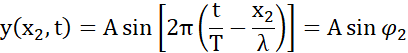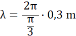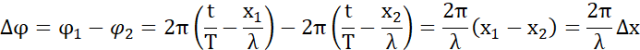 Oblicz długość fali, wiedząc, że pomiędzy punktami oddalonymi od siebie o ∆x = 30 cm różnica faz wynosi ∆