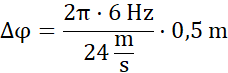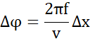 Oblicz różnicę faz pomiędzy drganiem dwóch punktów, wiedząc, że są one odległe od siebie o ∆x = 0,5, prędkość rozchodzenia się fali to v = 24