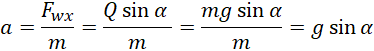 Na początku obliczamy przyspieszenie ciała na kierunku równoległym do równi, korzystając z drugiej zasady dynamiki. Następnie wyznaczamy wartości drogi i przyspieszenia korzystając z definicji sinusa oraz ze wzoru na drogę w ruchu jednostajnie przyspieszonym. Przyrównujemy do siebie wzory na przyspieszenie, aby obliczyć sinusa kąta nachylenia równi. Na koniec wstawiamy wyznaczoną wartość do wzoru na długość równi.