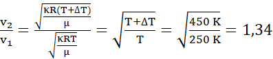 Zauważ, przyrost temperatury o 200 stopni Celsjusza oznacza przyrost temperatury o 200 kelwinów. Zamień temperaturę początkową argonu na kelwiny, dodając do podanej wartości 273. Skorzystaj ze wzoru na prędkość dźwięku w gazach (pierwiastek iloczynu współczynnika adiabaty, stałej gazowej i temperatury, podzielony przez masę molową gazu). Zwróć uwagę, temperatura argonu po zwiększeniu jej to suma temperatury początkowej i jej przyrostu. Skróć ze sobą współczynniki adiabaty, stałą gazową oraz masę molową (są takie same, gdyż jest to ten sam gaz, tylko o innej temperaturze).