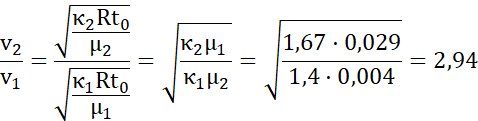 Skorzystaj ze wzoru na prędkość fali dźwiękowej w gazach (jest to pierwiastek z iloczynu wykładnika adiabaty, stałej gazowej i temperatury w kelwinach, podzielonego przez masę molową gazu). Aby otrzymać temperaturę w kelwinach, do temperatury w stopniach Celsjusza dodaj 273. Zauważ, iloraz prędkości dźwięku nie zależy od temperatury gazów, o ile jest ona taka sama dla każdego z nich (temperatura skróci się, podobnie jak stała gazowa).