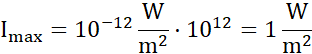 Wykonaj konieczne obliczenia i podaj przedział natężenia fali dźwiękowej, która jest słyszalna dla człowieka, wiedząc, że amplituda takiej fali mieści się w granicach od 10–11 m do 10–5 m.