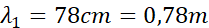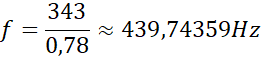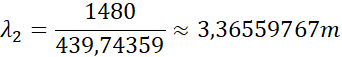 Częstotliwość fali nie zmienia się, kiedy przechodzi między ośrodkami. Korzystając ze wzoru na długość fali, wyprowadzamy wzór na częstotliwość długość fali w wodzie. Obliczamy z tego samego wzoru, podstawiając za częstotliwość wcześniej wyliczoną wartość.