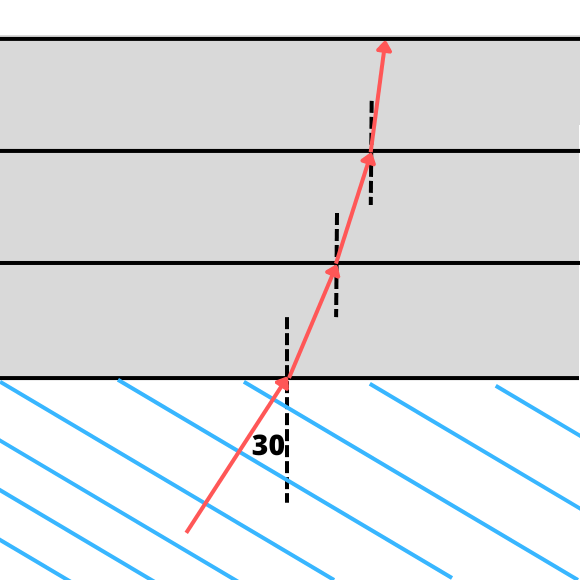 Należy sporządzić rysunek, który zobrazuje przebieg fali po kolejnych stopniach schodów zanurzonych w wodzie.