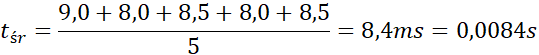 Obliczamy czas średni jako średnia arytmetyczną czasów podanych w tabeli, fala porusza się ruchem jednostajnym, zatem prędkość obliczamy z odpowiedniego wzoru, pamiętając, że droga to