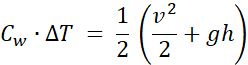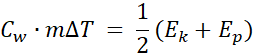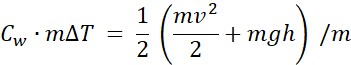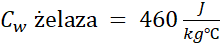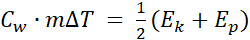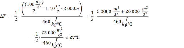 Korzystamy ze wzoru na ciepło właściwe , przekształcając go tak, aby wyliczyć ciepło pobrane. Z polecenia dowiadujemy się, że na wzrost temperatury przedmiotu zużywane jest 50% powstałej energii wewnętrznej, zatem Q możemy zapisać jako: . Zatem z przyrównania do obliczenia pozostaje nam ∆T.
