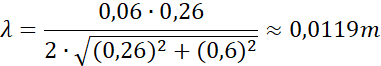 Używając podanego w treści zadania wzoru, należy obliczyć długość fali kolistej.
