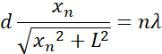 Pomocniczo wykonujemy rysunek. Zapisujemy warunek na wzmocnienie fali, następnie korzystając z rysunku i twierdzenia Pitagorasa obliczamy