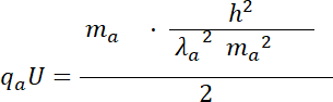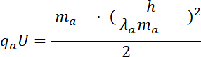W pierwszym kroku skorzystaj z wzoru de Broglie'a, aby obliczyć pęd cząstki na podstawie jej długości fali. Następnie przekształć pęd w energię kinetyczną cząstki, używając wzoru na energię kinetyczną. W ostatnim kroku skorzystaj z równości energii kinetycznej i pracy wykonanej na cząstkę przez napięcie, aby znaleźć szukane napięcie. Twoim wynikiem jest napięcie, które przyspieszyło cząstkę alfa ze stanu spoczynku.