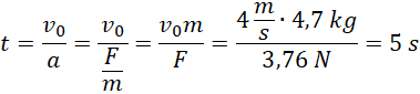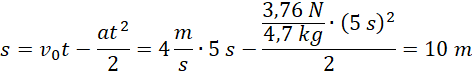 Wiedząc, że początkową wartość prędkości sanek o masie 4,7 kg wynosi 14,4 km/h, a wartość siły oporu to 3,76 N oblicz drogę, jaką przebyły sanki do chwili zatrzymania się, i czas, po którym to nastąpiło.