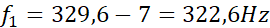 Częstotliwość dudnienia to różnica częstotliwości stroika i struny, na podstawie tej równości obliczamy szukaną częstotliwość.