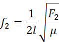 Ilość dudnień to częstotliwość nałożonych fal, czyli dudnienia. Częstotliwość fali wytworzonej na strunie obliczamy, przyrównując do siebie dwa wzoru na prędkość fali stojącej. Częstotliwość dudnienia nałożonych na siebie fal to różnica ich częstotliwości.