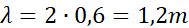 Długość fali podstawowej jest równa dwukrotności długości struny, prędkość tej fali obliczamy wprost ze wzoru, natomiast długość fali w powietrzu obliczamy również, ze wzoru pamiętając, że częstotliwość jest częstotliwością podstawową, z jaką drga fala stojąca.