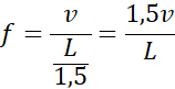 W długości sznurka zgodnie z rysunkiem pomocniczym mieści się 1,5 długości fali, korzystając z tej zależności oraz wzoru na częstotliwość fali obliczamy szukaną wielkość.