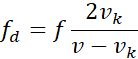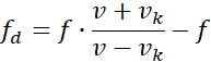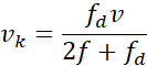 Na początku kuter jest ruchomym źródłem dźwięku a przeszkoda nieruchomym obserwatorem. Następnie to przeszkoda staje się nieruchomym źródłem dźwięku, a obserwator ruchomym obserwatorem, stosując odpowiednie wzoru na zjawisko Dopplera, oraz wzór na dudnienia podany w treści zadania wyprowadzamy wzór na prędkość kutra.