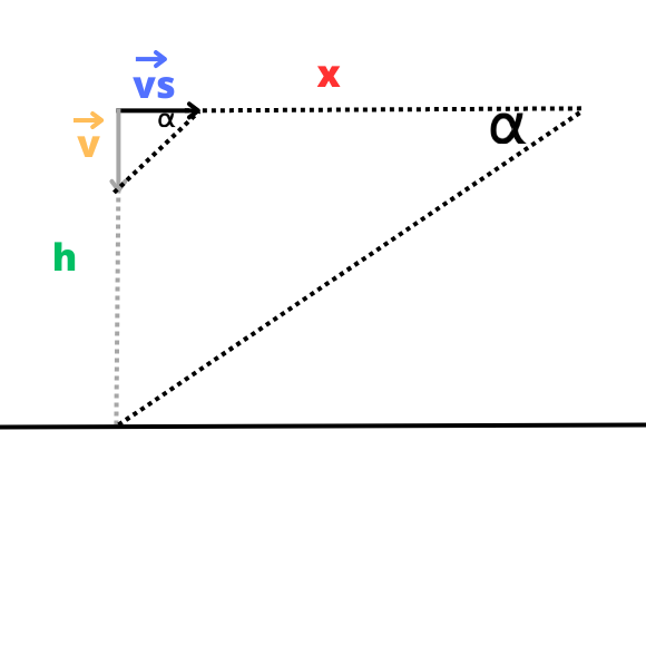 Na podstawie pomocniczego rysunku zapisujemy tangensa alfy, dla dużego trójkąta i podobnemu mu małego, następnie z definicji liczby Macha obliczamy prędkość z jaką poruszał się samolot, i podstawiamy do zależności.