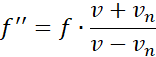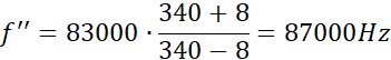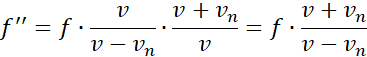 Najpierw nietoperz wysyła falę do ściany, korzystamy zatem ze wzoru, w którym źródło zbliża się do „ściany”, następnie fala odbija się od ściany i biegnie z powrotem do nietoperza, czyli korzystamy ze wzoru, kiedy słuchacz, czyli nietoperz zbliża się do dźwięku. Łącząc obie zależności, obliczamy częstotliwość fali odbitej od ściany.