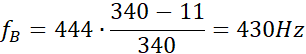 Częstotliwość obliczamy ze wzoru na zjawisko Dopplera.