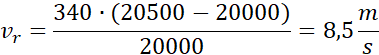 Korzystając ze wzoru z podpunktu a), obliczamy szukaną prędkość, podstawiając w miejsce częstotliwości odbieranego dźwięku, graniczną.