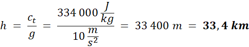 W tym zadaniu musisz obliczyć wysokość, z której musiałaby spaść bryła lodu o temperaturze 0°C, aby przy uderzeniu o powierzchnię Ziemi ulec stopieniu bez zmiany temperatury.