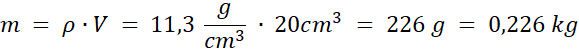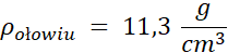 Do obliczeń potrzebujemy masę ołowiu. Obliczamy ją, znając gęstość ołowiu.