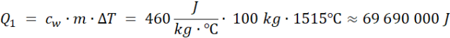 - energia potrzebna do ogrzania żelaza do temperatury topnienia