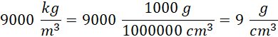 W tym zadaniu musisz wyrazić podane jednostki w gramach na centymetry sześcienny.