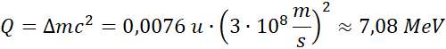 Wyznacz energię wyzwoloną w reakcji za pomocą formuły