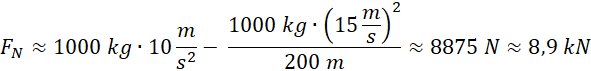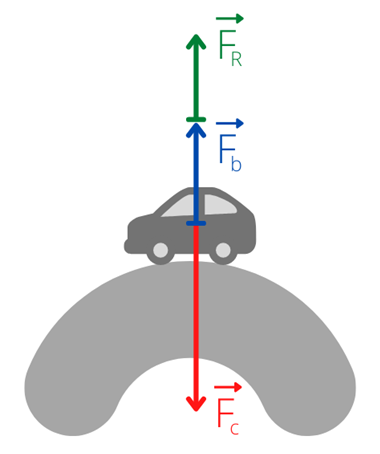 Na początku rysujemy rysunek pomocniczy i zaznaczamy na nim wszystkie siły działające na samochód. Na jego podstawie zapisz I zasadę dynamiki Newtona. Korzystając z III zasady dynamiki, zapisz, że siła reakcji od podłoża równa się sile nacisku samochodu na mostek. Następnie połącz ze sobą wzory i wykonujemy końcowe obliczenia.