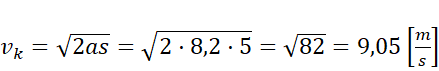 Prędkość końcowa w ruchu jednostajnie przyspieszonym może być obliczona jako iloczyn przyspieszenia i drogi lub jak w spadku swobodnym, jako pierwiastek z iloczynu dwukrotności drogi i przyspieszenia. Oblicz wartość pierwiastka.