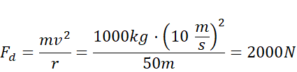 Siła bezwładności pełni rolę siły odśrodkowej. Dla poruszającego się samochodu o masie