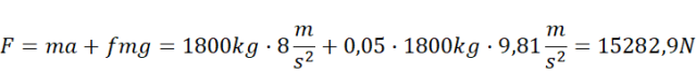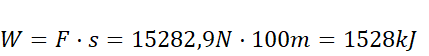 Zapisz dynamiczne równanie ruchu, opisujące siły działające na ciało, powodujące jego ruch. Siła, która wykonuje pracę, to siła ciągu silnika. Oblicz wartość pracy.