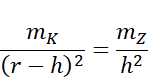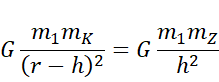 Zapisz równanie na równość sił między Ziemią a Księżycem. Stała grawitacji i masa ciał próbnego się skracają. Przekształć wzór, pamiętając, że iloraz masy Ziemi i księżyca jest równy 81.