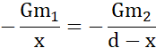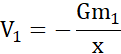 Potencjał grawitacyjny dla planety 1 w odległości x od środka planety: