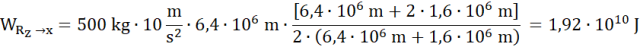 Policz, jaką pracę trzeba wykonać, aby wystrzelić z powierzchni Ziemi satelitę na odległość 1600 km na orbitę.