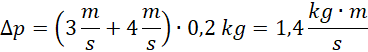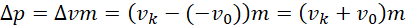 Zapisujemy wzór na przyrost pędu ciała i wstawiamy dane. Prędkość początkowa ma znak minus, ponieważ ma przeciwny zwrot do prędkości końcowej.