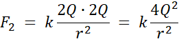 Po zetknięciu kul zachodzi sumowanie ładunków, a po ich rozdzieleniu równomierne rozdzielenie ładunków. Zatem każda kulka zyskuje ładunek 2Q.
