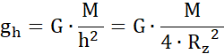 Przyspieszenie grawitacyjne na pewnej wysokości h: