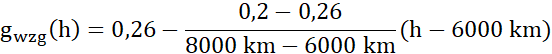 Za pomocą metody interpolacji liniowej policz wartość przyspieszenia ziemskiego na wysokości 7000 km. Skorzystaj z założenia, że od wysokości 6000 km do 8000 km wykres to linia prosta.