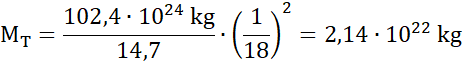 Policz, jaką masę ma Tryton, który jest księżycem Neptuna. Znana jest masa Neptuna, zależność między przyspieszeniem grawitacyjnym Neptuna i Trytona oraz między promieniami.