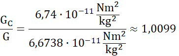 Policz, o ile procent wynik otrzymany przez Cavendisha różni się od współczesnej wartości stałej grawitacji.