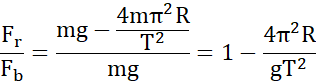 Zależność między siłą ciężkości na biegunie i na równiku: