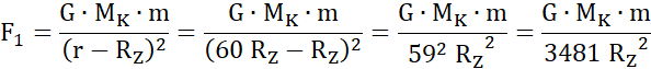 Wykorzystaj wzór na siłę przyciągania grawitacyjnego między dwoma ciałami: