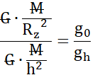Przyspieszenie grawitacyjne na pewnej wysokości h: