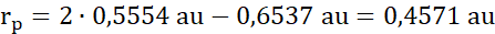 Policz odległość peryhelium od Słońca dla orbity Wenus, znając długość aphelium i wielkiej półosi.
