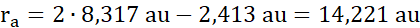 Policz odległość aphelium orbity od Słońca, znając odległość rp, długość wielkiej półosi, okres, mimośród.