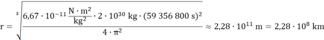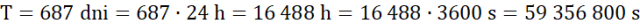 Policz średnią odległość Marsa od Słońca, znając okres obiegu tej planety i masę Słońca.