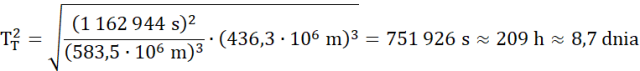 Policz okres obiegu księżyca Tytanii wokół Urana, znającodległość i okres innego księżyca od Urana oraz odległość Tytanii od Urana.