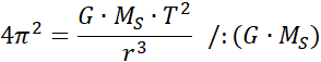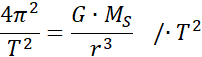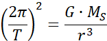 Słońce i planeta o pewnych masach tworzą układ dwóch ciał poruszających się po orbitach kołowych. Czas jednego obiegu wynosi T, a masa Słońca jest znacznie większa od masy planety. Wykaż, że dla planety krążącej w pewnej odległości r słuszny jest podany wzór.